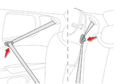Berg de gespen van de veiligheidsgordels achter op in de houders op de middenstijl als ze niet worden gebruikt of voordat de rugleuning van de achterbank (geheel of gedeeltelijk) wordt neergeklapt.