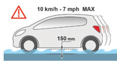 Probeer het rijden over overstroomde wegen zo veel mogelijk te vermijden, want het water kan de motor, versnellingsbak en het elektrische systeem van uw auto ernstig beschadigen.