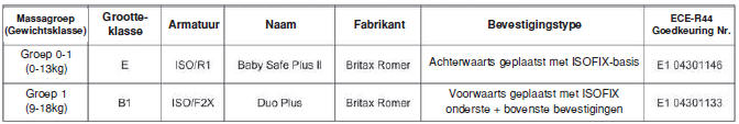 lijst vermeld worden. Dit zijn ISOFIX CRS in de categorieën "specifiek
