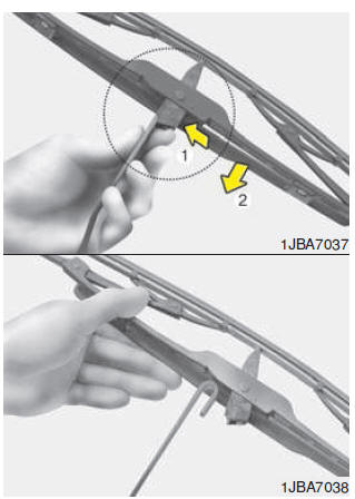 3. Monteer de nieuwe ruitenwisserbladen door de werkzaamheden voor het verwijderen in omgekeerde volgorde uit te voeren.