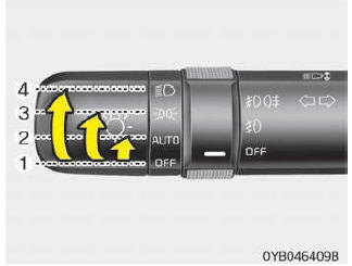 Als de lichtschakelaar in de stand dimlicht staat (4e stand), branden de koplampen, de achterlichten, het parkeerlicht, de kentekenplaatverlichting en de dashboardverlichting.