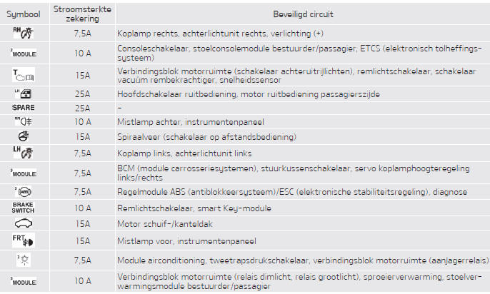 KIA Picanto: Zekeringkast bestuurderszijde
