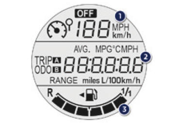Peugeot 108: Centraal displayDe weergegeven informatie is afhankelijk van de motoruitvoering en het type versnellingsbak van uw auto.