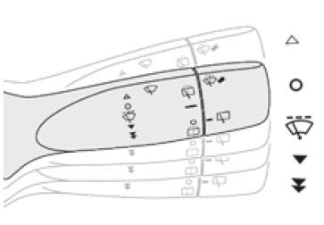 Peugeot 108: Ruitenwisserschakelaar| Verwijder onder winterse omstandigheden sneeuw, ijs of rijp van de voorruit, van het gebied rondom de ruitenwisserarmen en de ruitenwisserbladen en van het voorruitrubber alvorens de ruitenwissers in te schakelen. |