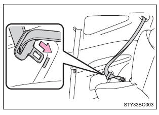 ■Opbergen van de veiligheidsgordels Berg de veiligheidsgordels altijd op voordat u de rugleuning achter neerklapt.
